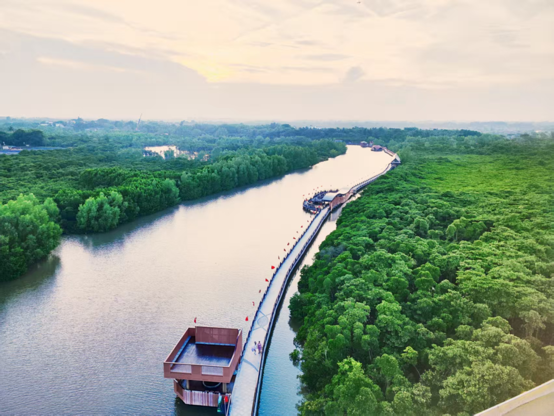 春日里,沉睡的红树林褪去旧叶,抽出嫩黄的新芽,层层叠叠的绿,铺在滩涂之上。风吹过栈道,带着草木的清香,偶尔有白鹭从林间起落,展翅掠过水面,留下一圈圈涟漪,灵动又治愈。