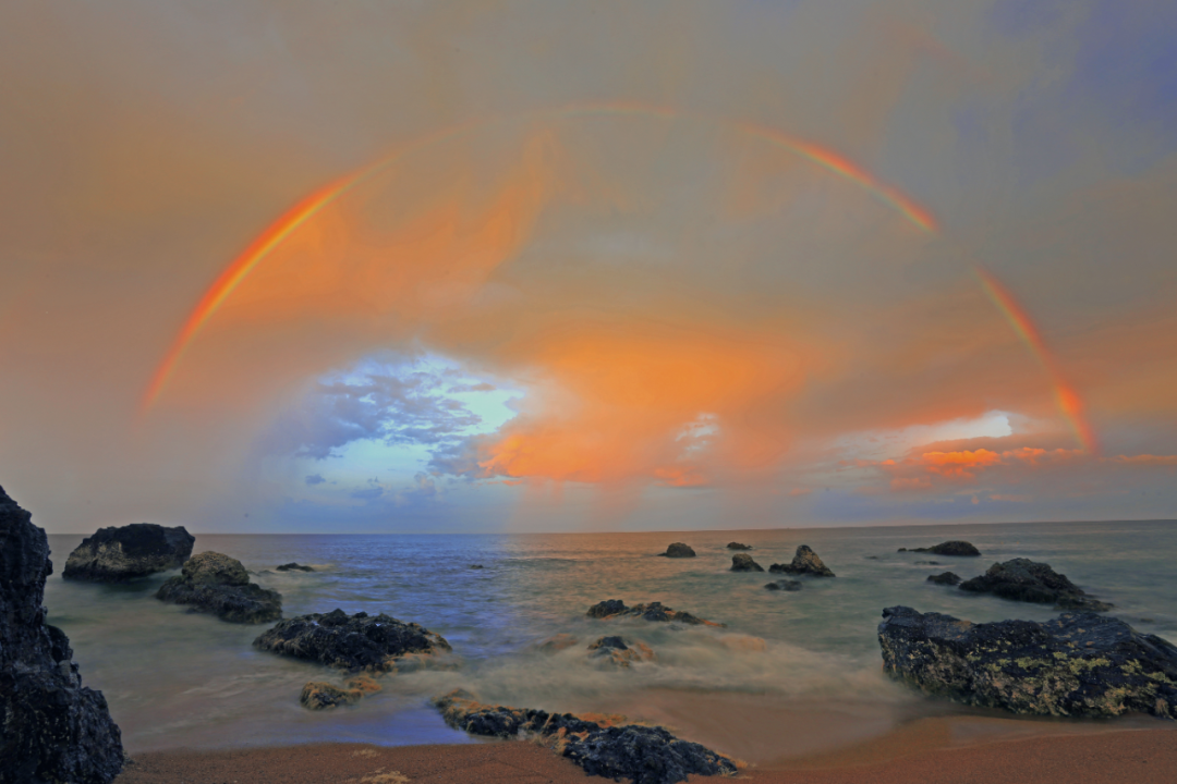 看晚霞漫过礁石,