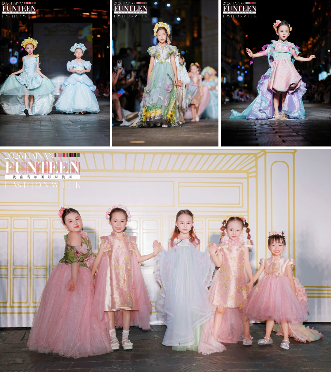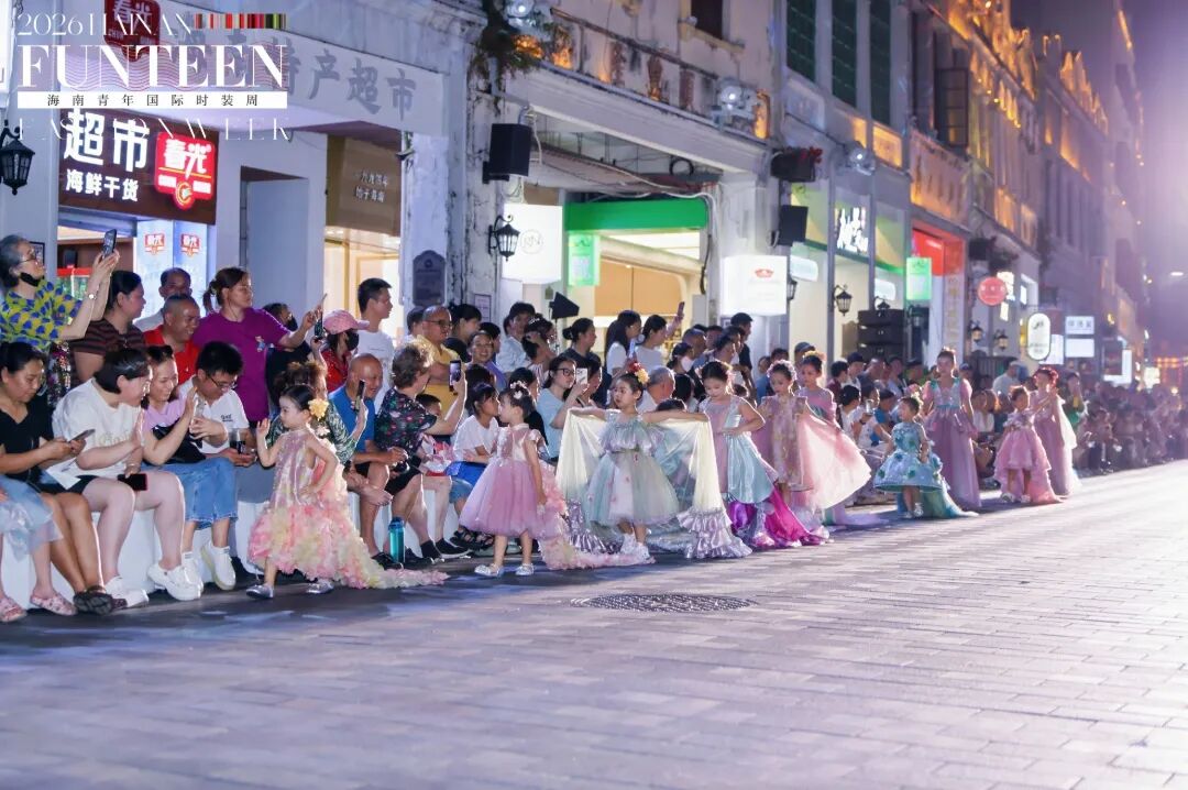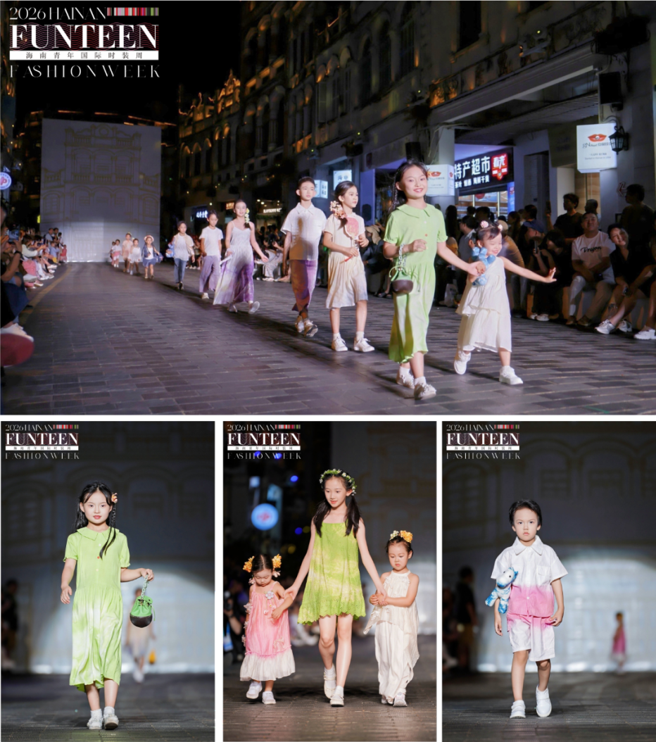 4月12日晚,海南青年国际时装周“非遗小仙子”“红鼓小爱”少儿时装秀在海口骑楼老街举办。孩子们身着草木染、宋锦、缂丝等非遗服饰依次登台,让百年老街焕发新彩。