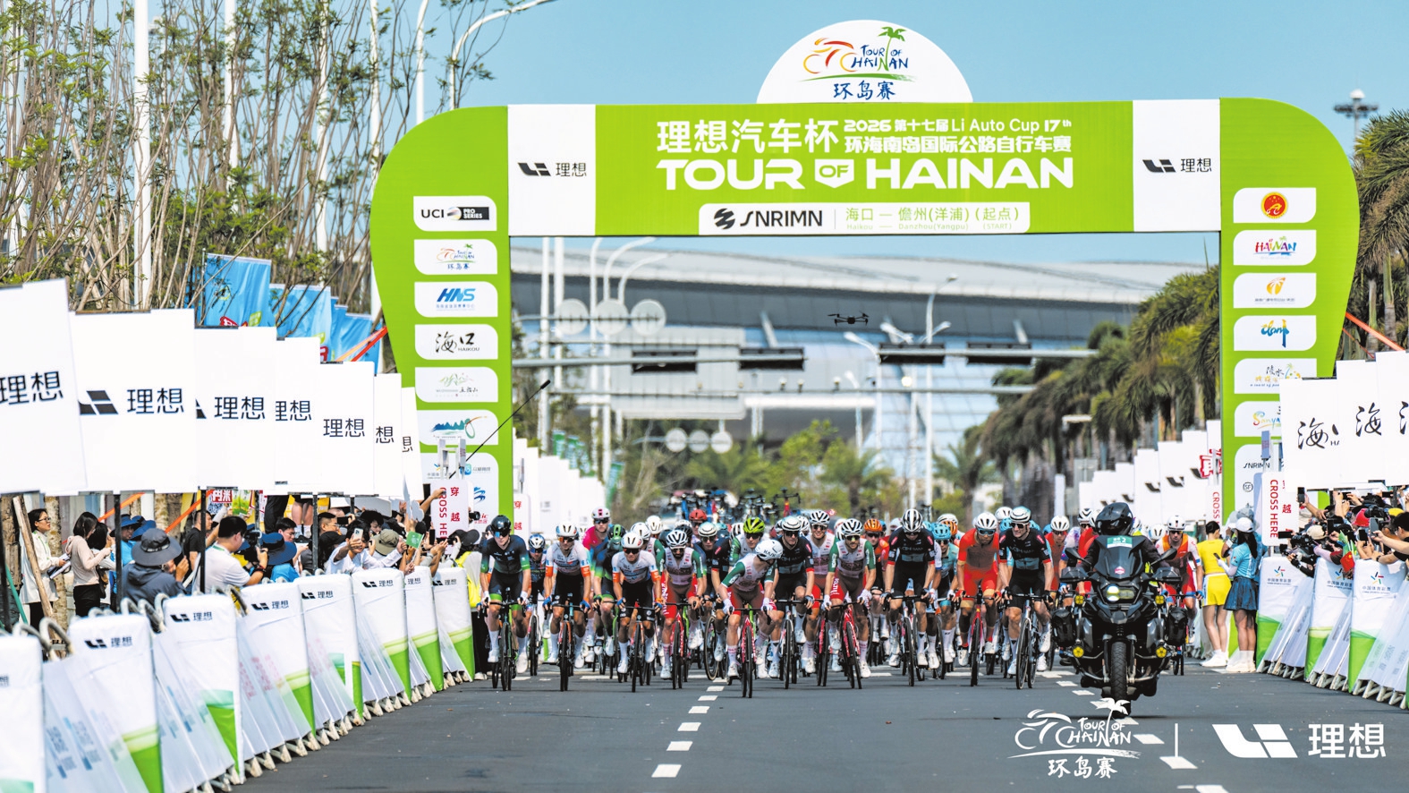 4月15日,2026第十七届环海南岛国际公路自行车赛在海口鸣枪开赛。(组委会供图)