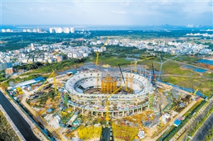原标题:海口五源河体育馆建设加速度 已完成总进度60%,预计明年12月底交用