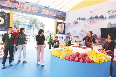 五指山黎峒种养农民专业合作社也参加了本次资源展。隆闺红茶、忧遁草茶……一罐罐包装精美的本地特色茶叶吸引了不少游客驻足。“我去过五指山,环境特别好,所以我相信那里种出的茶应该也很不错。”从四川绵阳来海南过冬的代女士和老伴现场品了一杯隆闺红,“汤色红艳明亮,香气醇厚悠长”,代女士当即掏出手机下了单。
