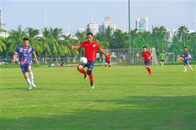 8月29日,选手在海口市“迎春杯”足球比赛中。 组委会供图