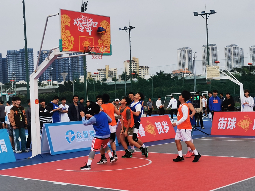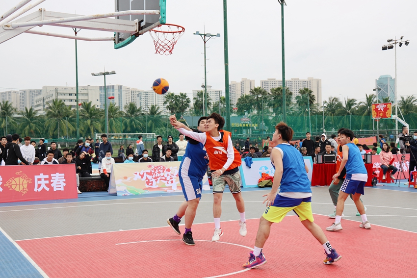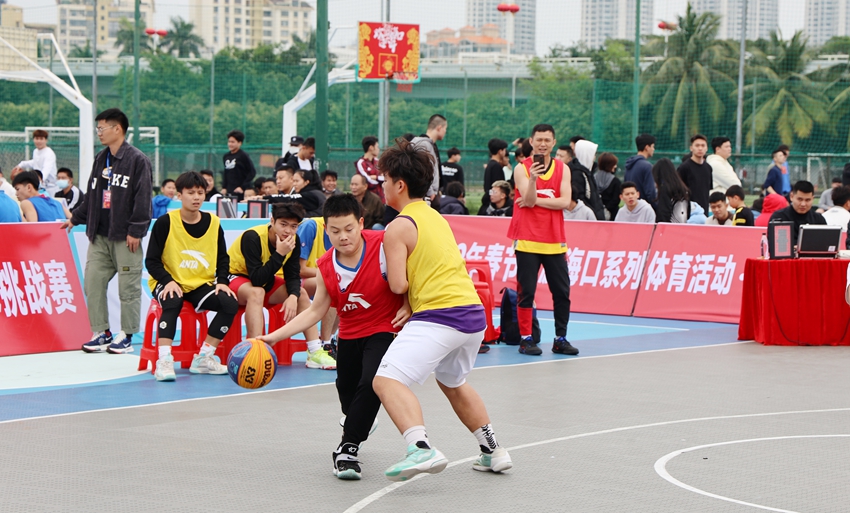 2月4日下午,2022年“欢游海口过大年”体育活动·街头篮球挑战赛(街头庆春)在海口市世纪公园篮球场开打。男子三对三篮球赛共有70支队伍报名参赛、男子技巧赛共有48人和男子三分球赛共有64人报名参加,赛事活动将持续至2月6日。