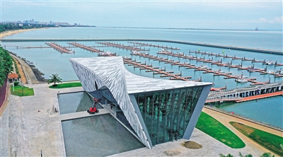 外形新颖的海口市国家帆船基地公共码头游客中心。