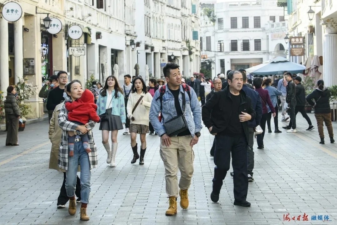 1月2日,大量市民游客漫步骑楼老街,品味海口。海口日报记者 陈长宇 摄