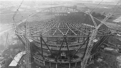 体育馆钢屋盖昨日封顶