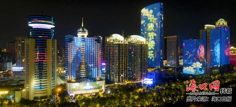 “中秋节快乐”。夜晚,海口滨海大道两旁的多栋高楼霓虹灯亮起,格外引人注目,美丽的“灯光秀”营造浓浓的节日氛围,众多市民游客驻足观看拍照。
