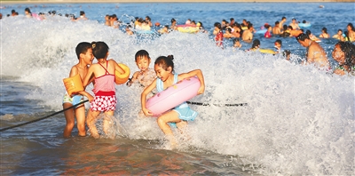 三亚大东海,市民游客开心戏水。 武昊 摄