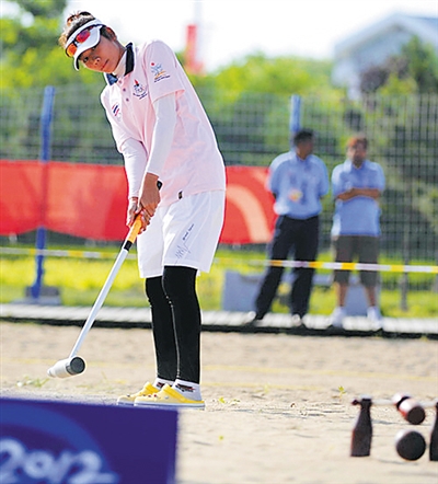 沙滩木球比赛近似高尔夫与门球。