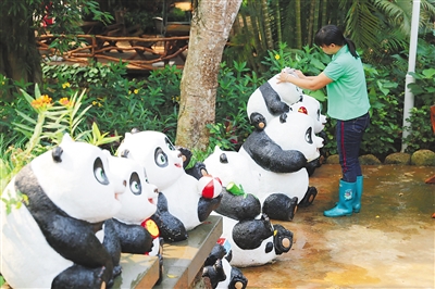 近日,在海南热带野生动植物园,工作人员对景区进行保洁,以崭新面貌迎接游客。本报记者 张茂 摄