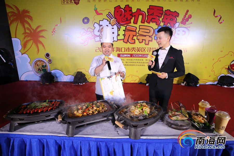 商家负责人上台亲自推荐自家特色招牌菜品。南海网记者陈望 摄