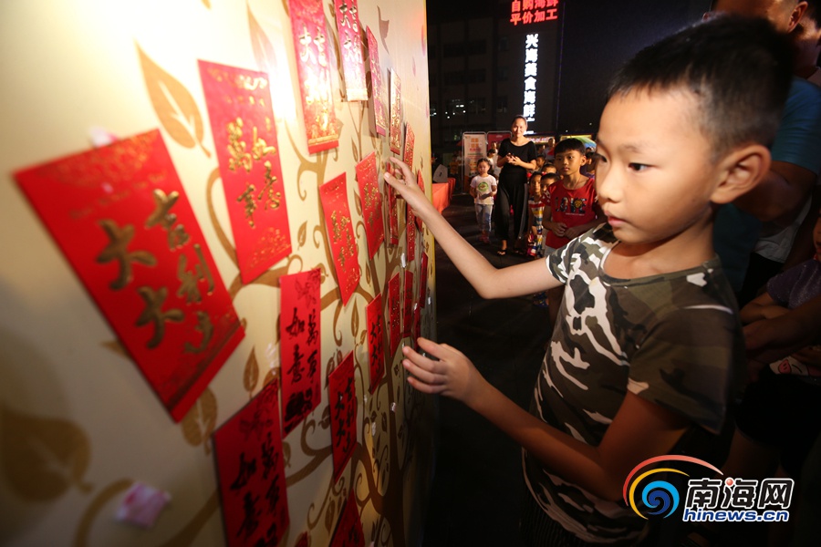小朋友在红包墙抽取红包。南海网记者陈望 摄