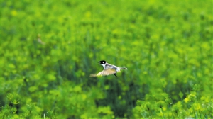 ▶在美舍河凤翔湿地公园人工梯田湿地飞翔的白头鹎。