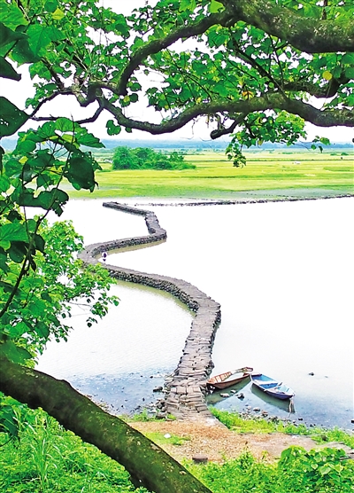 雨后的海口羊山地区凉爽怡人,沿着龙塘镇三联村附近一段村道,在鸟语虫鸣中,穿过古树绿荫,如诗如画的新旧沟湿地渐渐呈现在眼前。