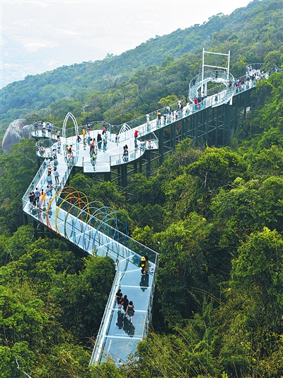 三亚亚龙湾热带天堂森林公园推出的玻璃栈桥成为“网红打卡地”。 (本版图片均由本报记者 武威 摄)