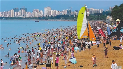当天,海口假日海滩、西秀海滩,三亚大东海海滩、亚龙湾和三亚湾海域成为本岛居民、游客扎堆洗龙水的聚集地,人们在海边尽情嬉戏,祈求健康、平安。
