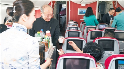 今年4月26日,海南航空HU7281航班从海口飞往北京,26年前,海南航空正是由这条航线起步。在重温首航的客舱活动中,海航集团董事长陈峰带领管理团队作为客舱服务人员,为旅客提供服务,26年初心不变,传承海航“店小二”服务精神,用匠心铸造五星服务品质。