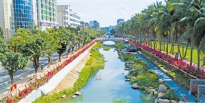 如今的美舍河,水质常态下达到V类水及以上标准,超前完成考核目标,环境改变巨大。海口在把河道治理好的同时,注重以人民为中心,以便民、惠民为出发点和落脚点,增建市民活动广场20多个,在美舍河下游两边做了绿廊、绿地、骑行道、慢行道、环卫公厕,增加了休闲和娱乐空间,把美舍河建设成为一个穿城而过的湿地公园,不仅净化美化了城市水体、带动了周边商贸区的快速发展,还探索出了一套可复制、可推广的治理技术和服务模式,搭建技术服务平台,为全市水体治理提供可借鉴经验,更是成为城市更新和生态修补的良好典范,让市民享受生态修复成果,有更多获得感、安全感和幸福感。