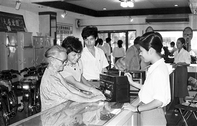 1987年,海口市华侨大厦免税商店,华侨在选购收录两用机。黄一鸣 摄