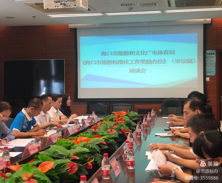 为进一步完善《海口市旅游标准化工作奖励办法》(审议稿)的内容,广泛吸纳各有关部门、企业的意见。8月14日上午,市旅文局杨昭山副调研员主持召开座谈会,研究《海口市旅游标准化工作奖励办法》(审议稿)。市司法局和市市场监管局、市商务局、市交通局、四个区旅文局、市市民游客中心等职能部门及市旅文局相关科室、旅游协会、旅游企业相关负责人参会。