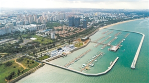 12月13日,航拍镜头下的海口市国家帆船基地公共码头。 本报记者 康登淋 摄
