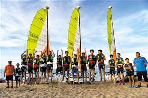 “帆船帆板运动的推广,建立在海口游泳教育普及的基础上。”海口市教育局体卫艺科科长申群芳介绍,帆船帆板运动因其水上特征以及风力、气象等不确定性,对操作者要求极高。在教学过程中,要求学员必须会游泳、能自救。同时,由于帆船帆板的重量和抗风力的需要,要求学员需在10岁以上。“截至目前,游泳教育已在全市学校铺开,四年级以上全员参训,4万人通过考核,这为帆船帆板运动的开展提供了很好的基础。”申群芳说。