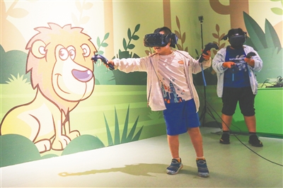 5月18日,海南省博物馆“动物总动员——馆藏动物文物展”开展,小朋友在体验VR互动游戏。