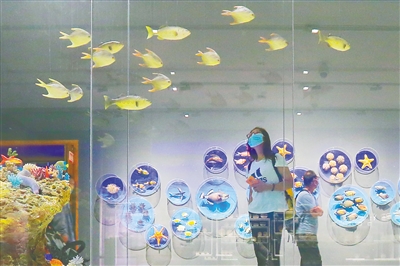 市民游客在参观各类海洋动物标本。 本版图片均由见习记者 王程龙 摄