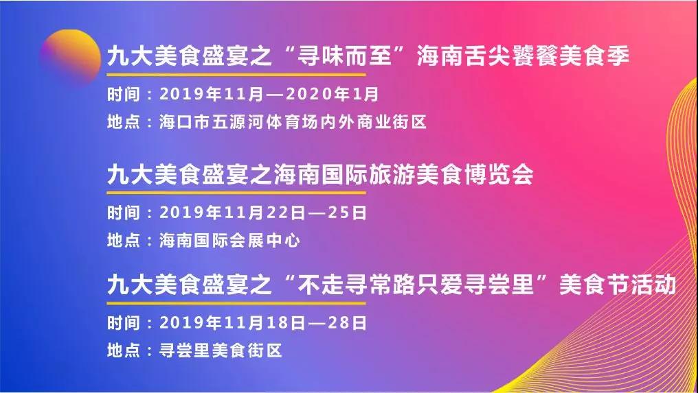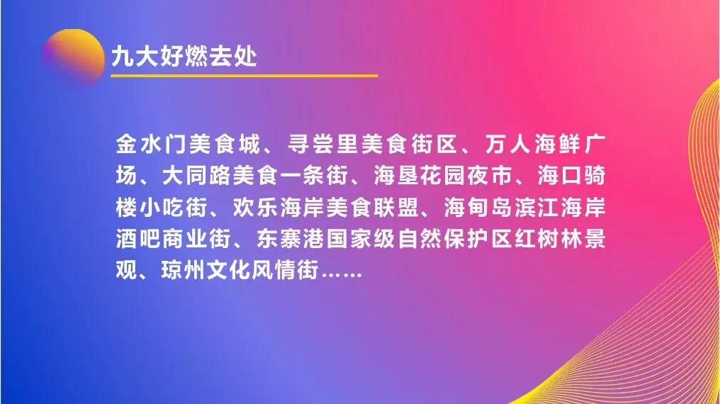 9大狂欢活动。2019海南电竞狂欢节、中华小姐选美大赛、爱奇艺FUN盛典、长沙广电海口光景骑楼等活动将陆续在海口开展。