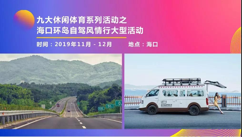 9项文体活动。ICE世界名猫赛、2019年第二届海南《21世纪海上丝绸之路合唱节》闭幕式、“千车万人”游海南活动等活动。