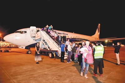 10月30日,三亚⇆托木斯克航线正式开通,当天163名旅客从俄罗斯托木斯克抵达三亚。 本报记者 封烁 通讯员 杨蕊 摄