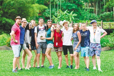 一条条繁忙而密集的国际航线给海南带来了大量的国际游客。图为外国游客在海南呀诺达雨林文化旅游区游玩。 本报记者 武威 摄
