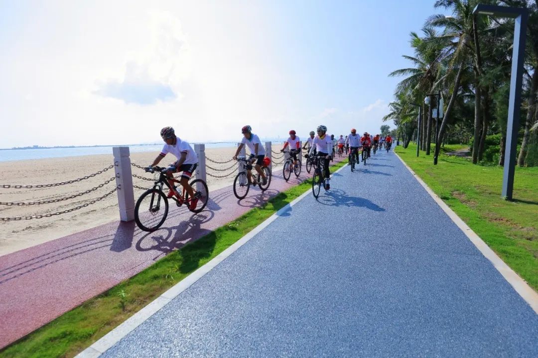 7月26日,2022年喜迎消博会“绿骑海口”活动在海口假日海滩景区椰林长廊慢行道举办。活动以骑行打卡海口最美绿道为主要内容,吸引了一百余名骑行爱好者前来参加。