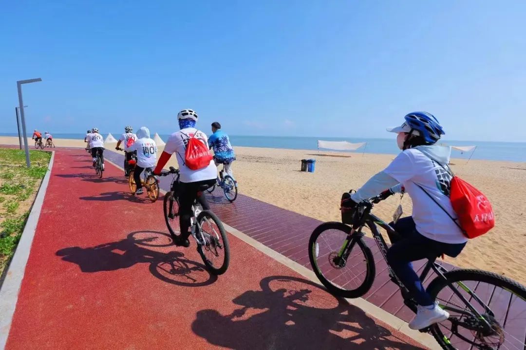 活动当天,激动人心的启动仪式过后,骑行爱好者们伴随着鸣笛声齐齐出发,活力开启畅游海口西海岸之旅。骑行爱好者们分别打卡了海口假日海滩、五源河国家湿地公园和海南国际会展中心。爱好者们在骑行中过程中尽情欣赏沿途滨海风光,充分感受海口城市魅力。更有爱好者在中途停下,以靓丽风景为背景,拍照留念此次独特的骑行之旅。