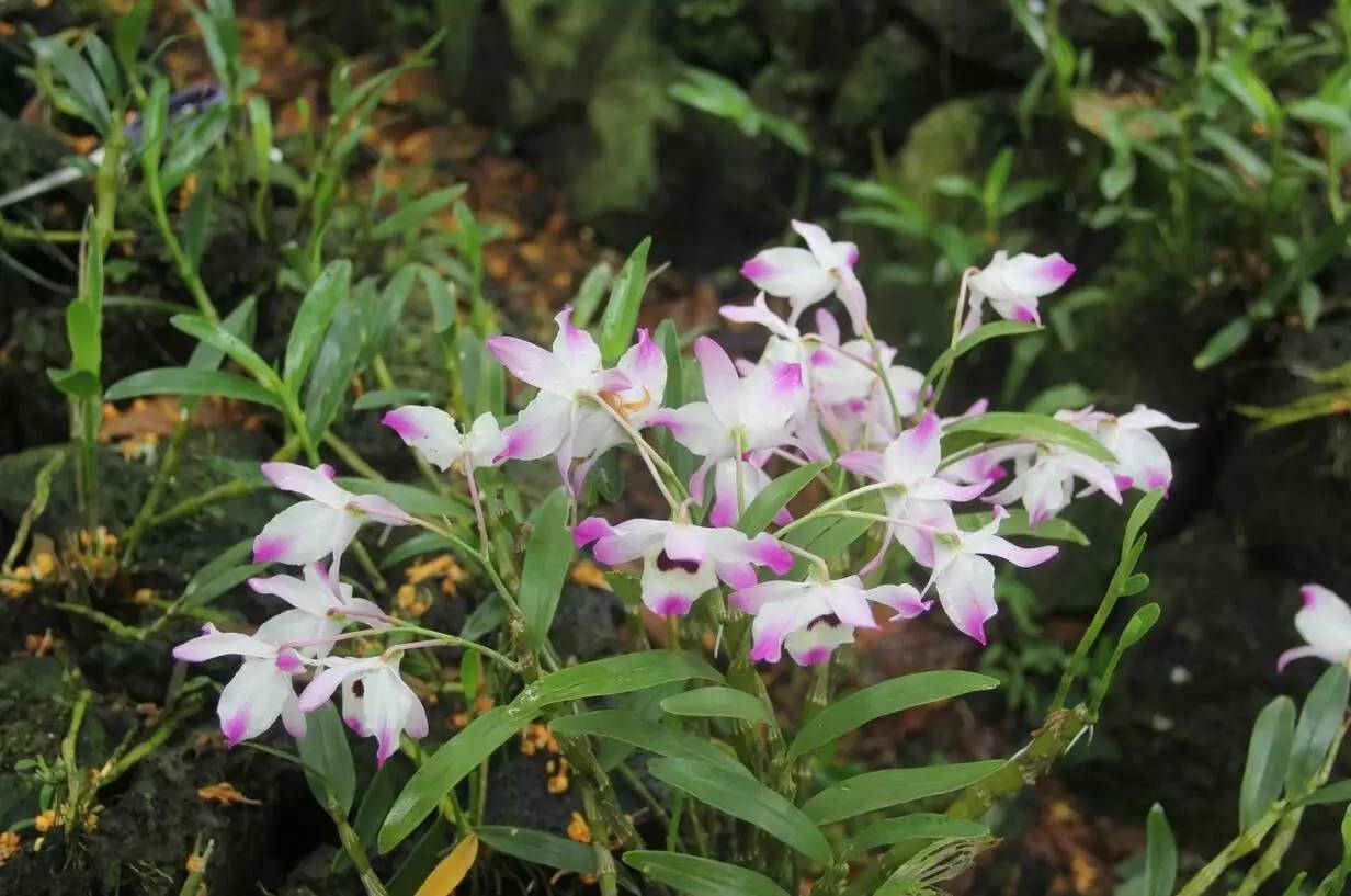 金钗石斛种植:充分利用了斌腾村石多地少、树木繁多、水汽充足的条件,在树上、火山石上种植金钗石斛,既带动农民增收致富、又不破坏生态、有利于生物的多样性,在发展中保护了生态环境;同时,金钗石斛每年花期在3-5月,届时将出现花石相映、花树并茂的独特风景。