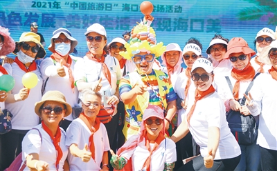 5月19日,参加“中国旅游日”海口分会场活动的游客在现场合影。本报记者 张茂 摄
