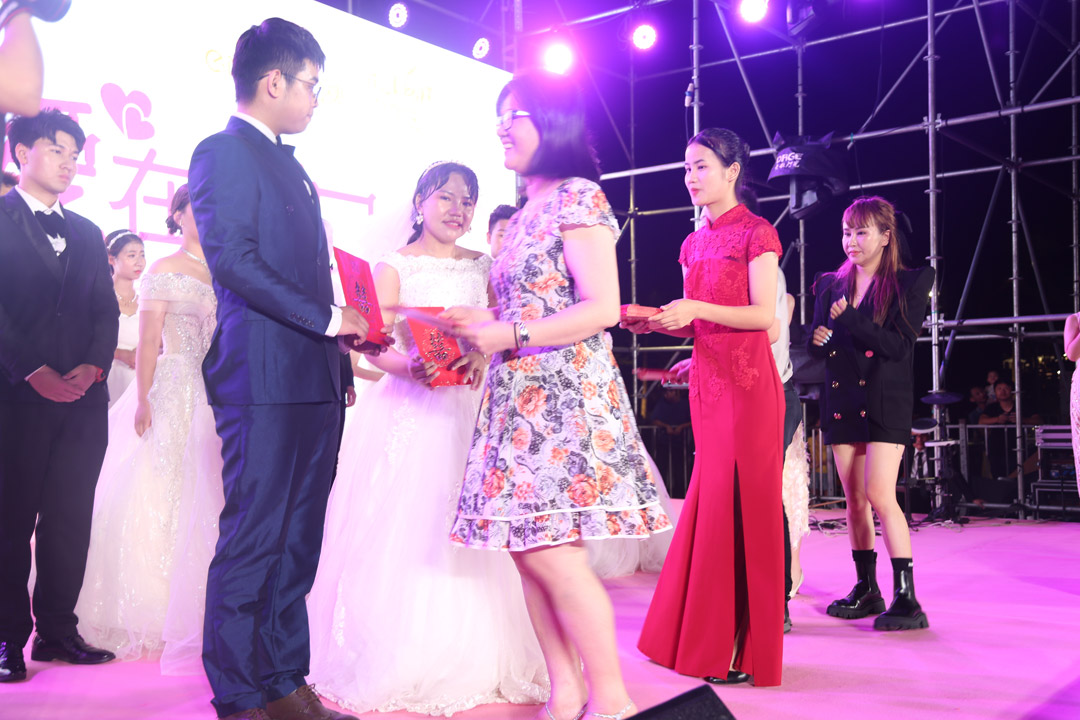 举行一场浪漫的婚礼,许下相守一生的爱情誓言,见证一起走过的路,是众多情侣都向往的事。灯光的闪烁,9对经过征集的新人来到活动现场举行集体婚礼,他们不远万里,来到海口这座浪漫之城,在椰风海韵的环境中,背靠蔚蓝大海进行一生中最重要的仪式,大声说出山盟海誓的爱情宣言。在这座滨海之城得到最美好的祝福。