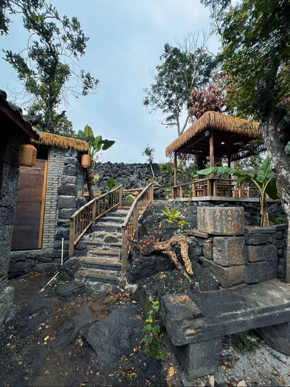 三卿村坐落于海口市石山镇道堂村委会境内,自宋朝肇始,迄今已有800多年历史,是名副其实的古老村落。全村共97户500余口人,至今保存着100多栋完好的古石屋。这些石屋栋栋采用干垒与铆榫结构工艺建造,不施水泥砂浆,亦无水泥钉,地基无需刻意找平,直接构筑于火山岩之上。前墙选用精雕细琢的火山石,屋顶覆盖传统瓦片,房梁上镌刻着精美的火山图腾或传统吉祥图案,完整保留了古村原始的质朴风貌。2014年,该村即已入选第三批中国传统村落名录。