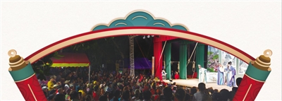 春节期间,海口、定安、文昌、琼海等市县农村地区会热热闹闹地举办公期、庙会活动。为添喜庆,当地人总要“绑戏”助兴。白天,家家户户有宴席,宾主尽欢;晚上,大家相约到村里的戏台前看戏。