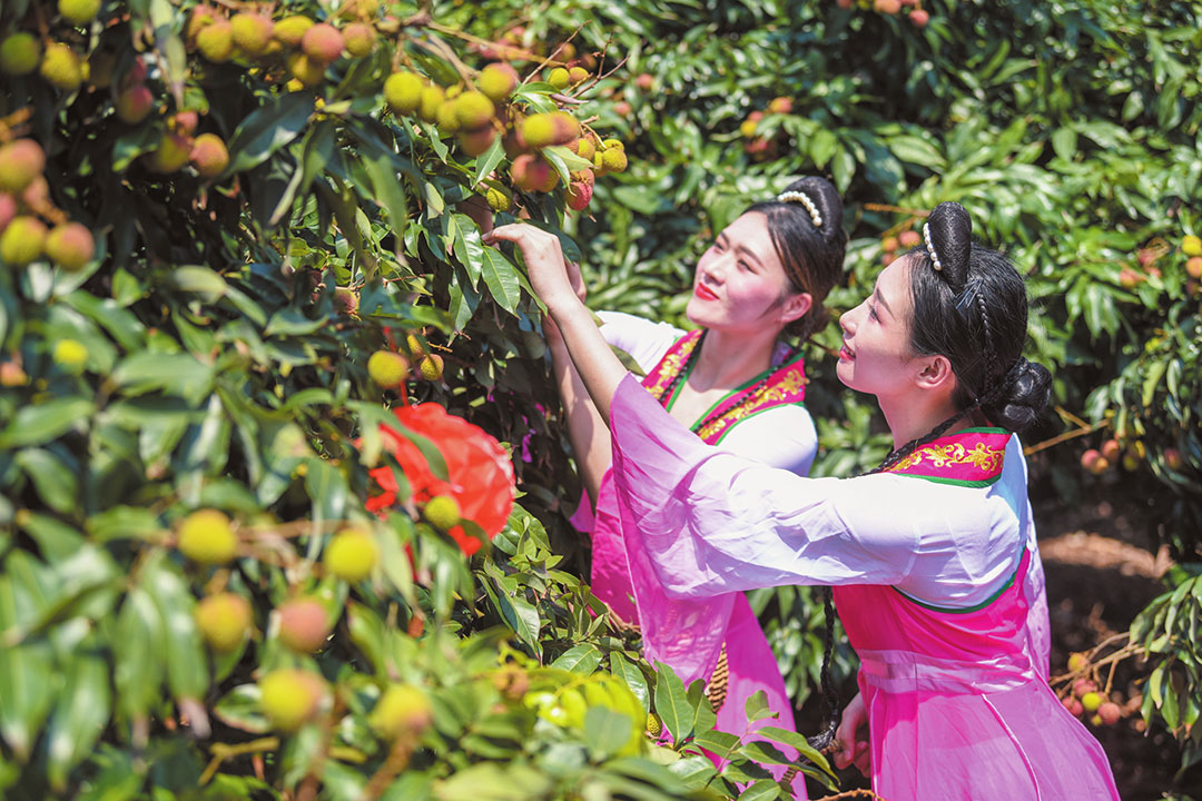 作为中国荔枝原生地之一,这里有2000多年的荔枝种植历史,现存4.4万亩野生荔枝林,百年古荔枝树2千株以上,形成了世界罕见的野生荔枝母本群。为确保荔枝的丰收丰产,连日来,果农们在果园内辛勤劳作,为荔枝树疏花、防虫,持续做好田间管理工作。