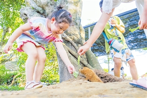10月5日,在海口天鹅湖动物园,市民使用景区提供的饲料投喂土拨鼠。 见习记者 孙士杰 摄