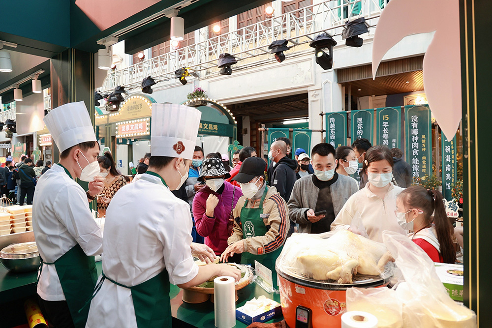 12月23日至25日在骑楼老街,不少市民游客慕名而来,纷纷加入“沉浸式风味市集”现场。海南鸡饭档口、非遗展演、创意手作、情景表演、海南旅游商品获奖商品展台和海口城市文化印记展台、金融展台等版块,散落分布于中山路骑楼老街上,琳琅满目,目不暇接。