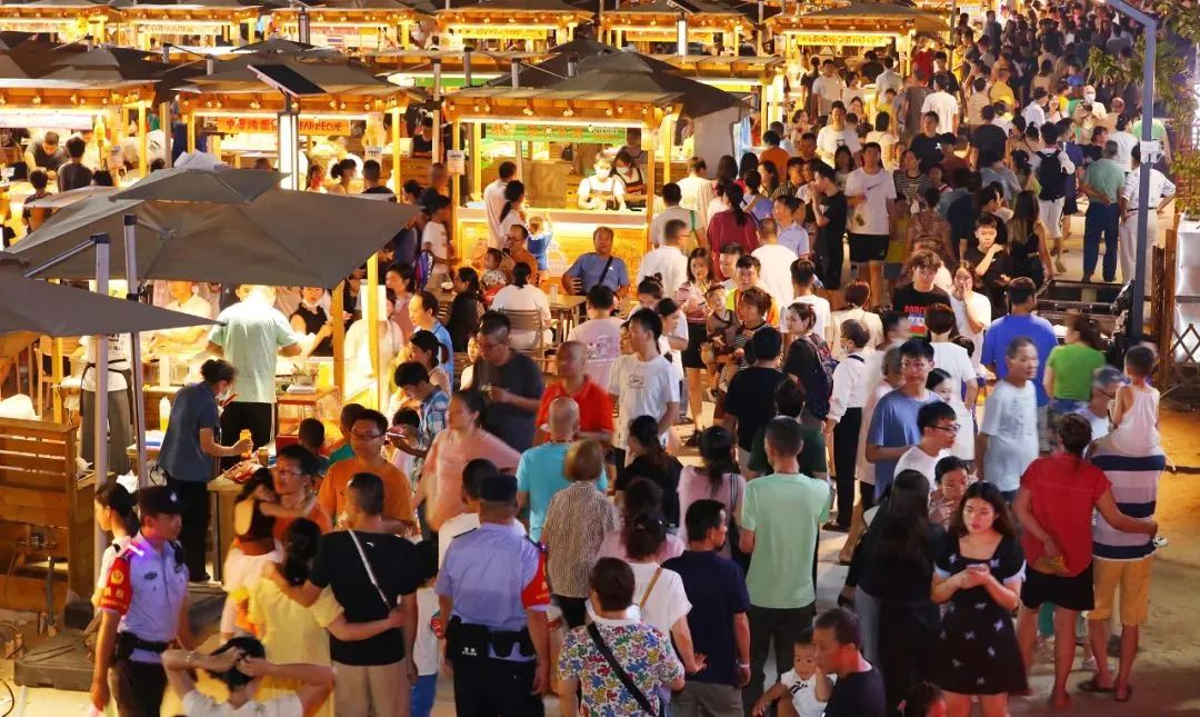 二是夜间旅游频出新亮点。保利中央海岸国际餐饮文化商业街区举办亮灯仪式,为市民游客奉上绚丽多彩的视觉盛宴;还推出星空之境音乐会、蒸汽朋克马戏团表演、星空潮玩市集、星空下的电影院等多场景互动活动,打造集时尚、演艺、文化、休闲于一体的夜间消费新场景,吸引众多市民游客前来打卡。