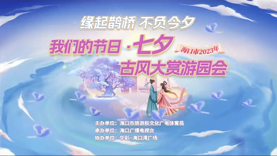 8月22日晚,农历七月初七,“缘起鹊桥,不负今夕”海口市2023年我们的节日·七夕——古风大赏游园会在华彩·海口湾浪漫启幕。