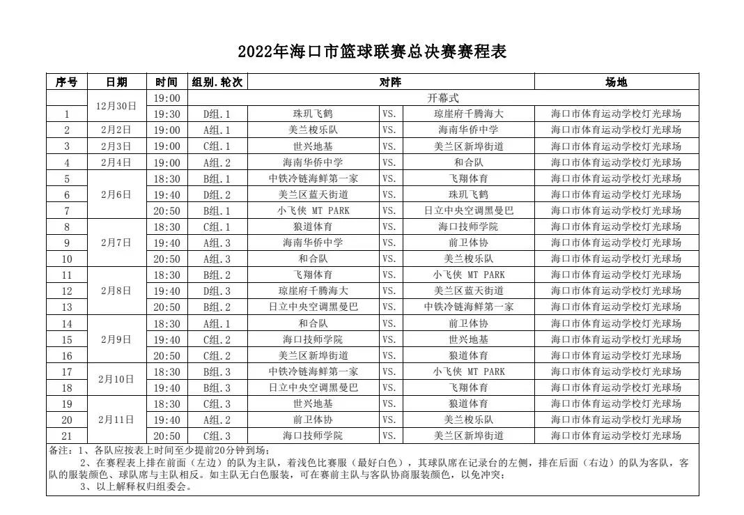 从赛事组委会获悉,2022年海口市篮球联赛总决赛将于2月2日晚19:00重启,16支球队将展开角逐,比赛将持续至2月25日。届时,爱动体育网将在抖音号视频直播比赛。