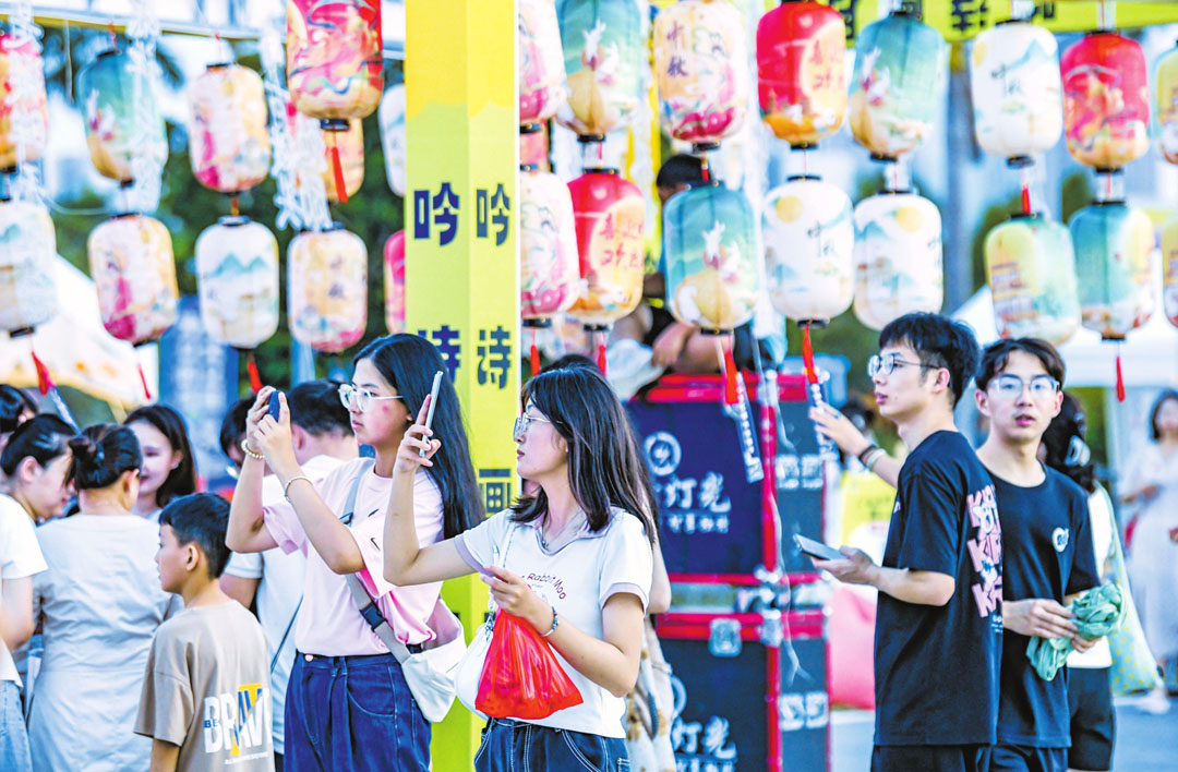 9月29日,在海口云洞图书馆,猜灯谜活动吸引市民打卡拍照。 本报记者 康登淋 摄