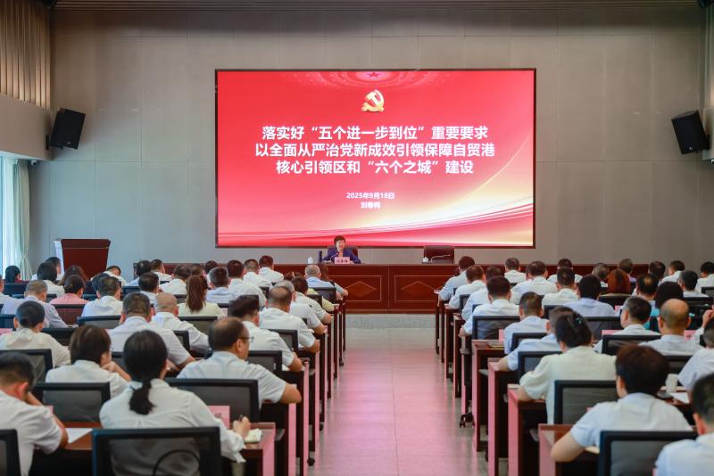 刘春梅深刻阐述了新形势下持续深化全面从严治党的重要性和紧迫性,围绕习近平总书记在中央政治局第二十一次集体学习时提出的“五个进一步到位”重要要求,强调党委(党组)书记要坚定理想信念、严守党纪党规、自觉接受监督、严格规范用权,要求牢固树立正确选人用人导向,加强权力运行监督和制度执行力,深化各类监督贯通协同,深入推进党的自我革命,坚决扛起管党治党政治责任,以更严要求、更实作风履职尽责,护航自贸港建设行稳致远。