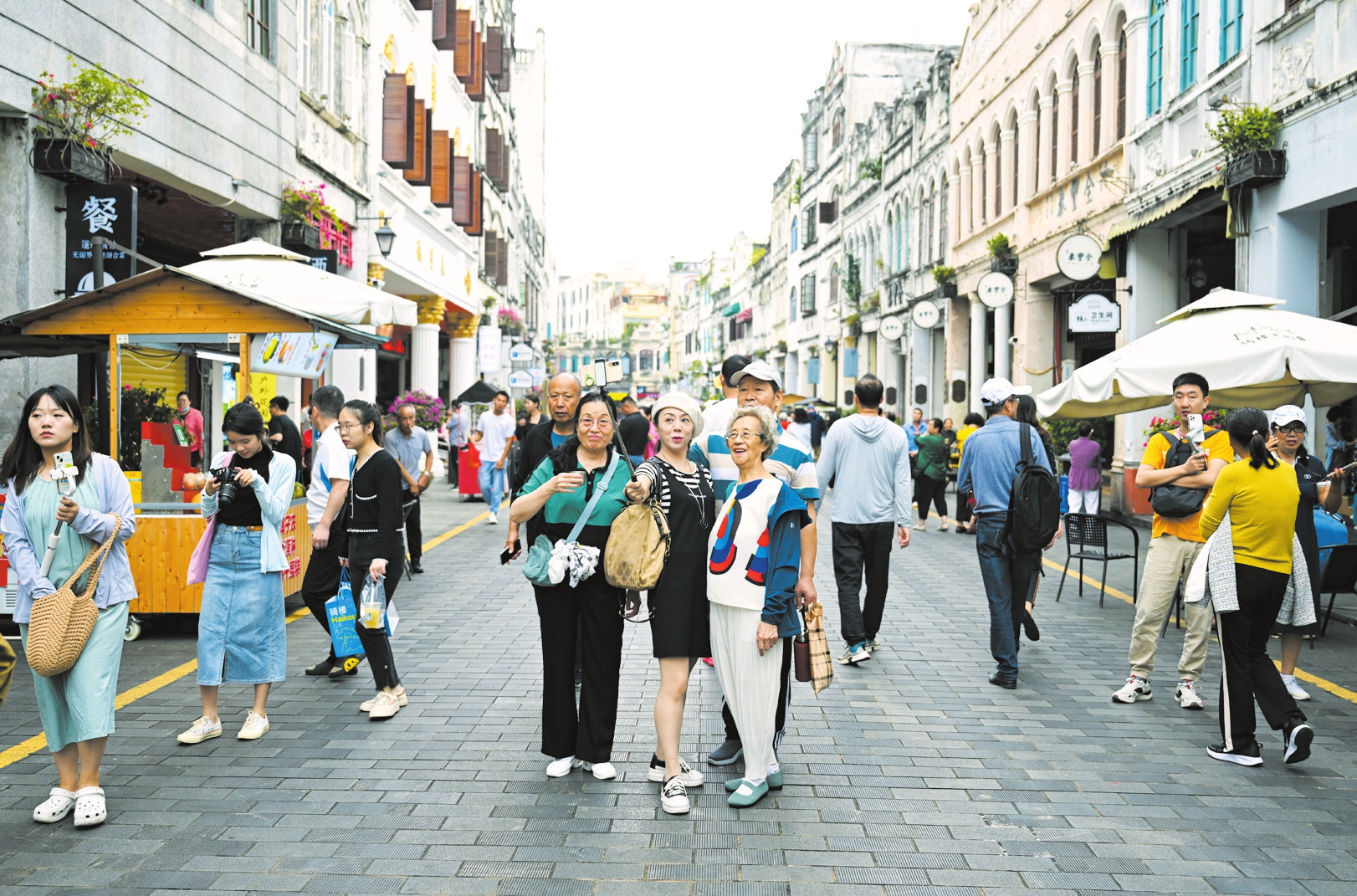 11月15日,市民游客在海口骑楼老街感受南洋文化和人文魅力。 本报记者 张俊其 摄