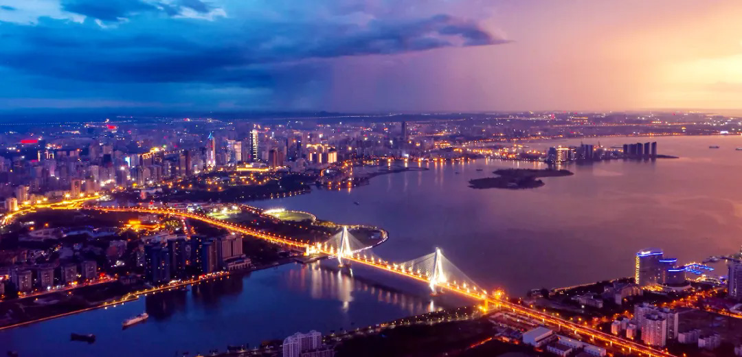 当夜幕降临,这座滨海城市展现出